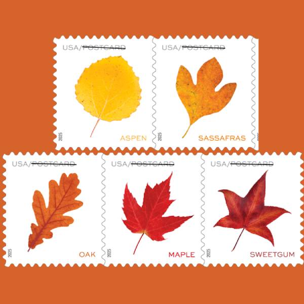 Vibrant Leaves 2025 Postcard Rate Roll - 1 Roll / 100 Pcs